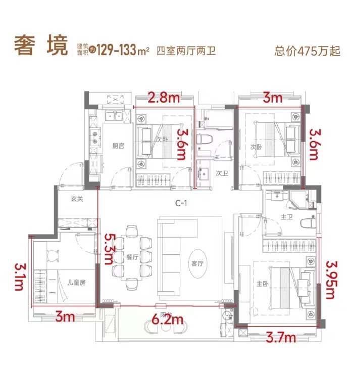項目所有戶型,在設(shè)計時做到精雕細琢,力求至美,大面寬、短進深,南北通透,通風(fēng)、采光俱佳,功能布局合理,每個房間的大小都恰當(dāng)好處,動靜分離,陽光充足。改善型建面約129㎡更是做到了約6.2米的寬廳設(shè)計,媲美大平層,北房間可放1.5米的床。